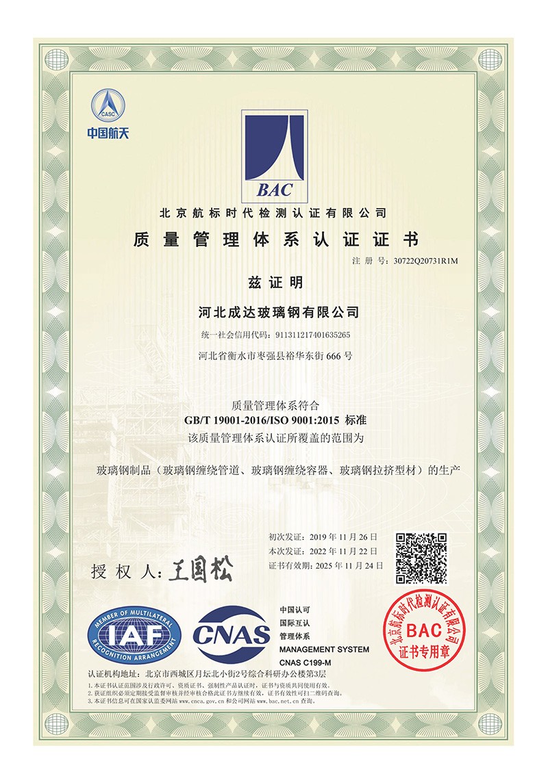 質(zhì)量管理體系認(rèn)證證書