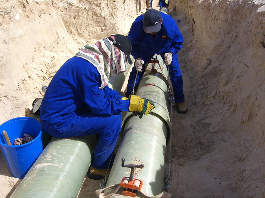 玻璃鋼管道是一種輕質(zhì)、高強(qiáng)、耐腐蝕的非金屬管道。它是具有樹脂基體重的玻璃纖維按工藝要求逐層纏繞在旋轉(zhuǎn)的芯模上,并在纖維之間遠(yuǎn)距離均勻地鋪上石英砂作為夾砂層。其管壁結(jié)構(gòu)合理先進(jìn),能充分發(fā)揮材料的作用,在滿足使用強(qiáng)度的前題下,提高了鋼度,保證了產(chǎn)品的穩(wěn)定性和可靠性。玻璃鋼夾砂管以其優(yōu)異的耐化學(xué)腐蝕、輕質(zhì)高強(qiáng),不結(jié)垢,抗震性強(qiáng),與普通鋼管比較使用壽命長,綜合造價(jià)低,安裝快捷,安全可靠等優(yōu)點(diǎn),被廣大用戶所接受。